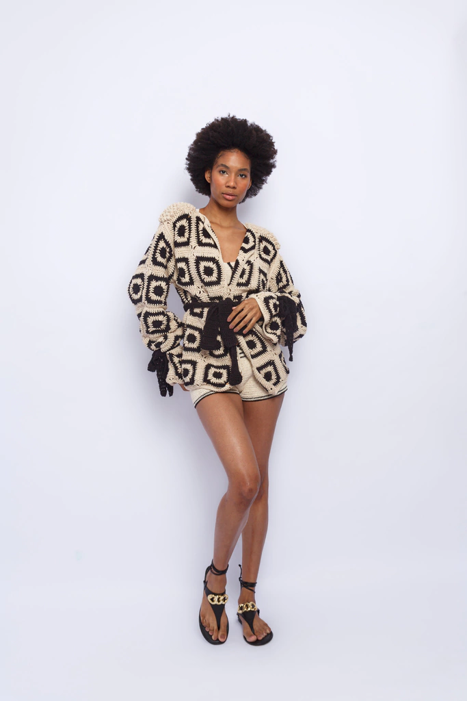 Casaco em crochê 100% algodão todo em square feito na bahia quadrado por quadrado manualmente por nossas crocheteiras.
