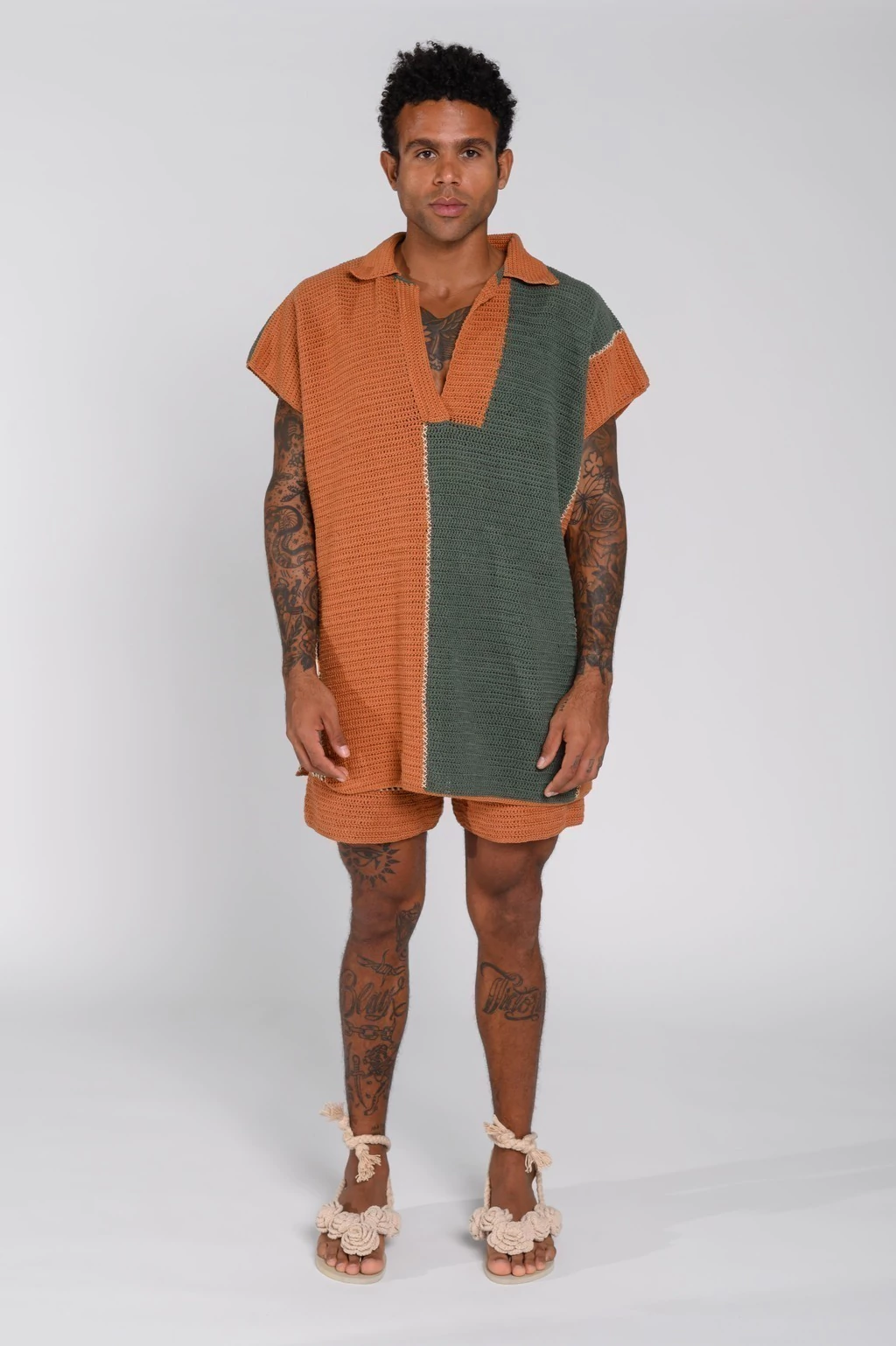 Camisa em croche feito square a square e depois aplicadas em um processo minusioso e complexo.